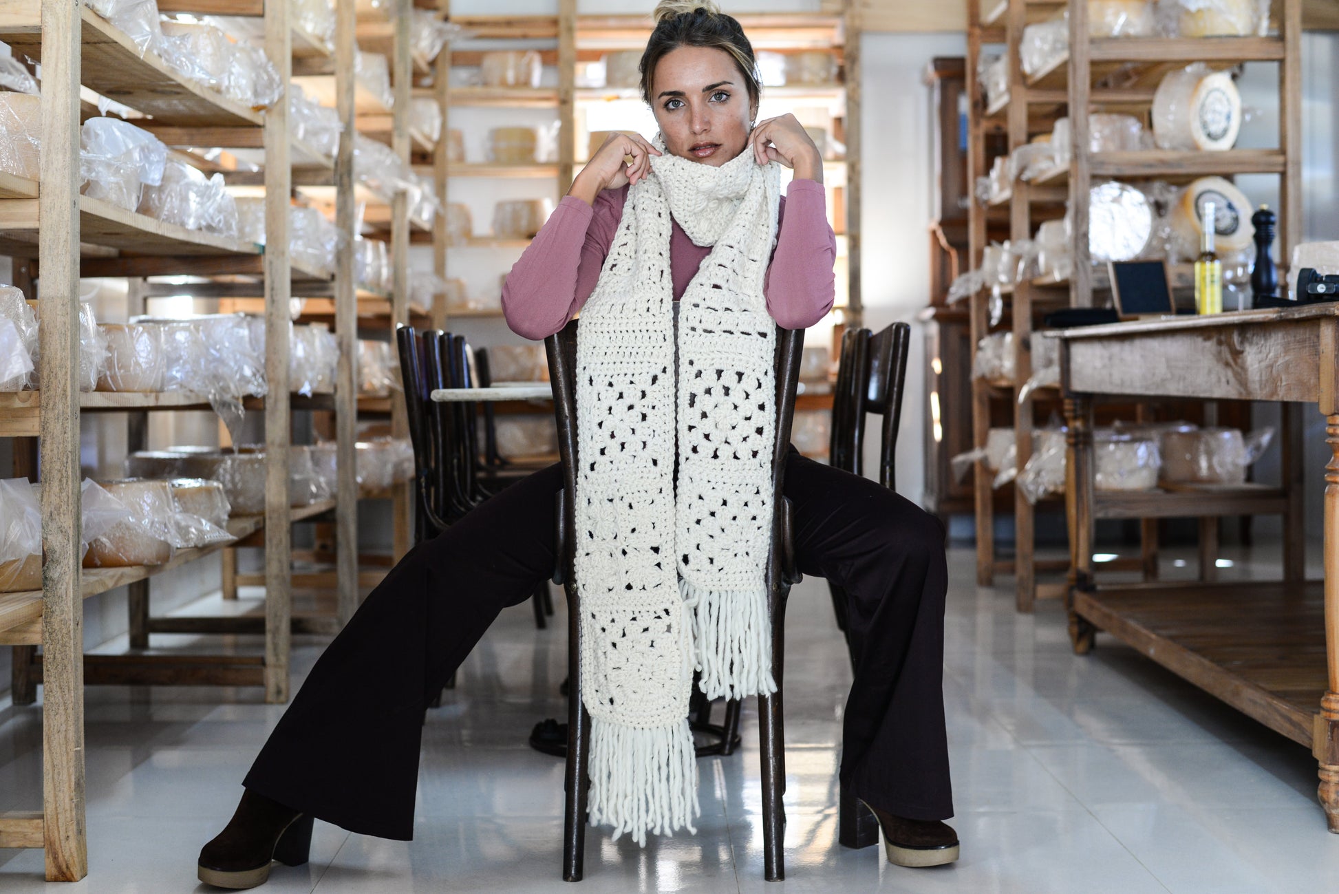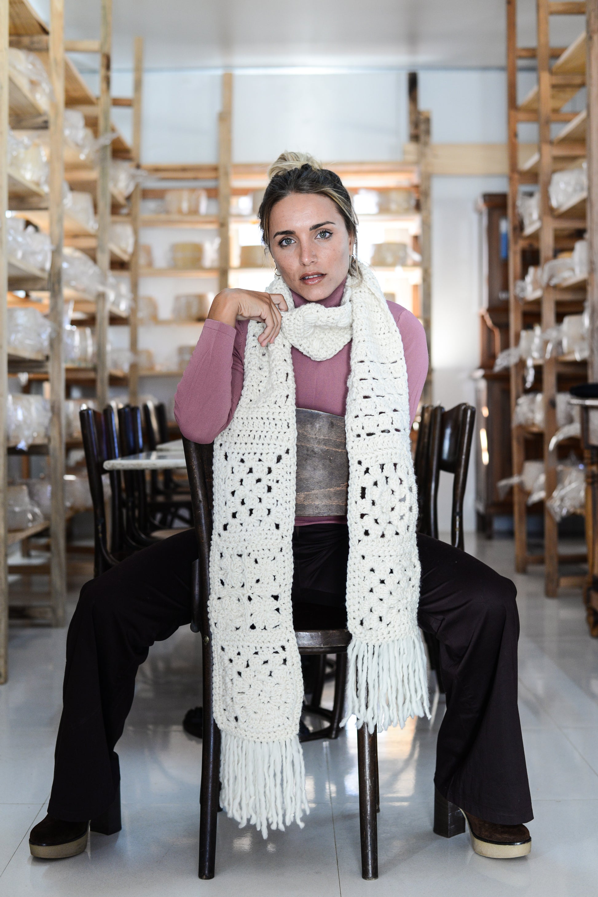 La Bufanda Silvestre está delicadamente elaborada en lana merino con un toque de nostalgia y modernidad. Tejida a mano en crochet, su superficie texturizada presenta una hermosa construcción de grannies square que se despliegan por toda la bufanda, añadiendo un encanto único.