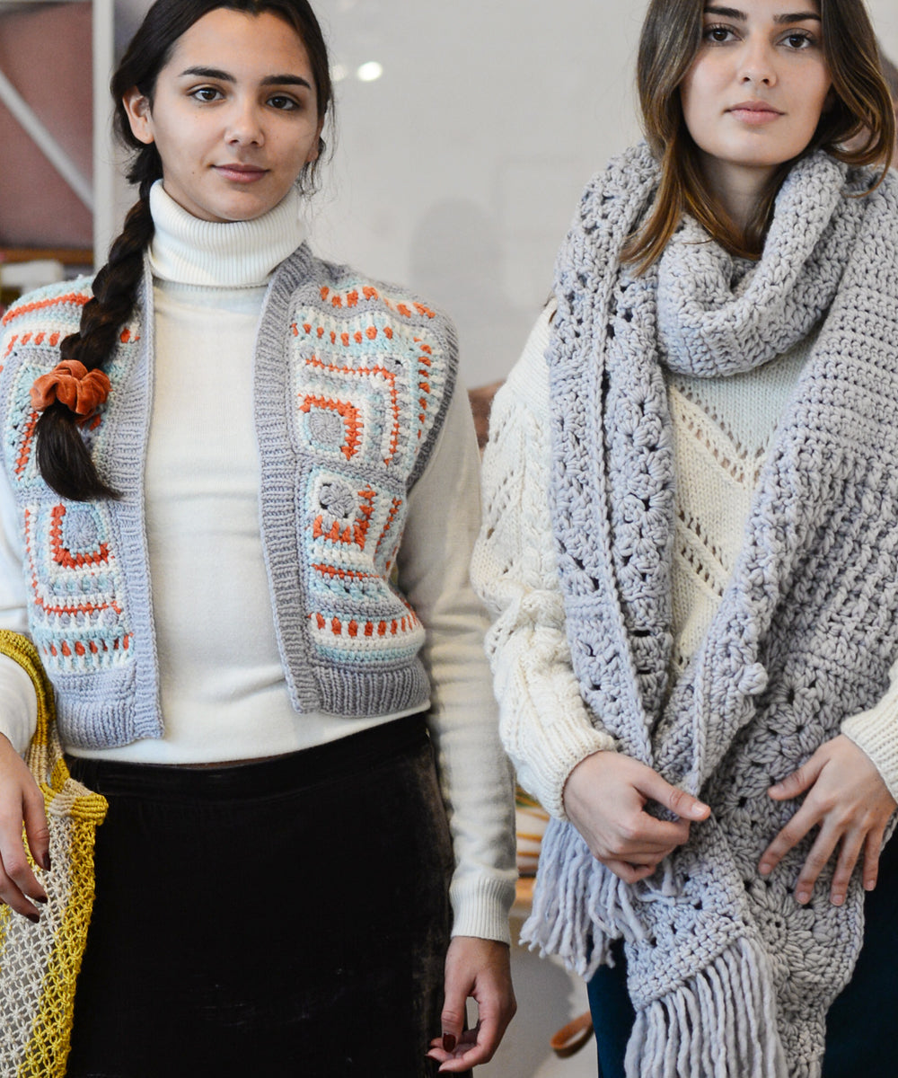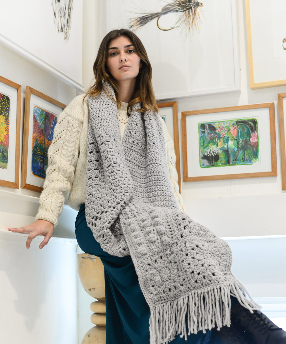 Cálido, texturizado chal oversized tejido a mano.