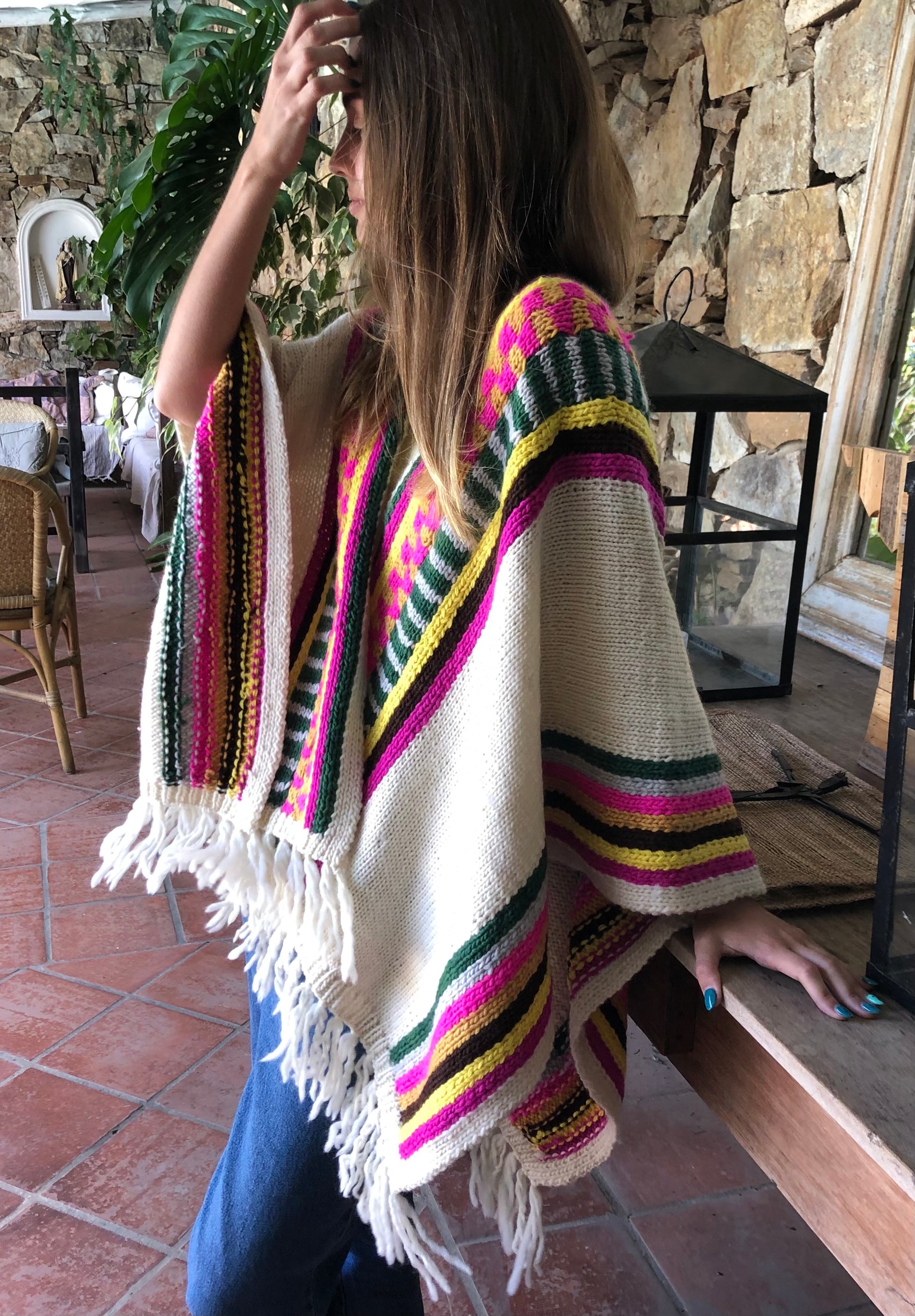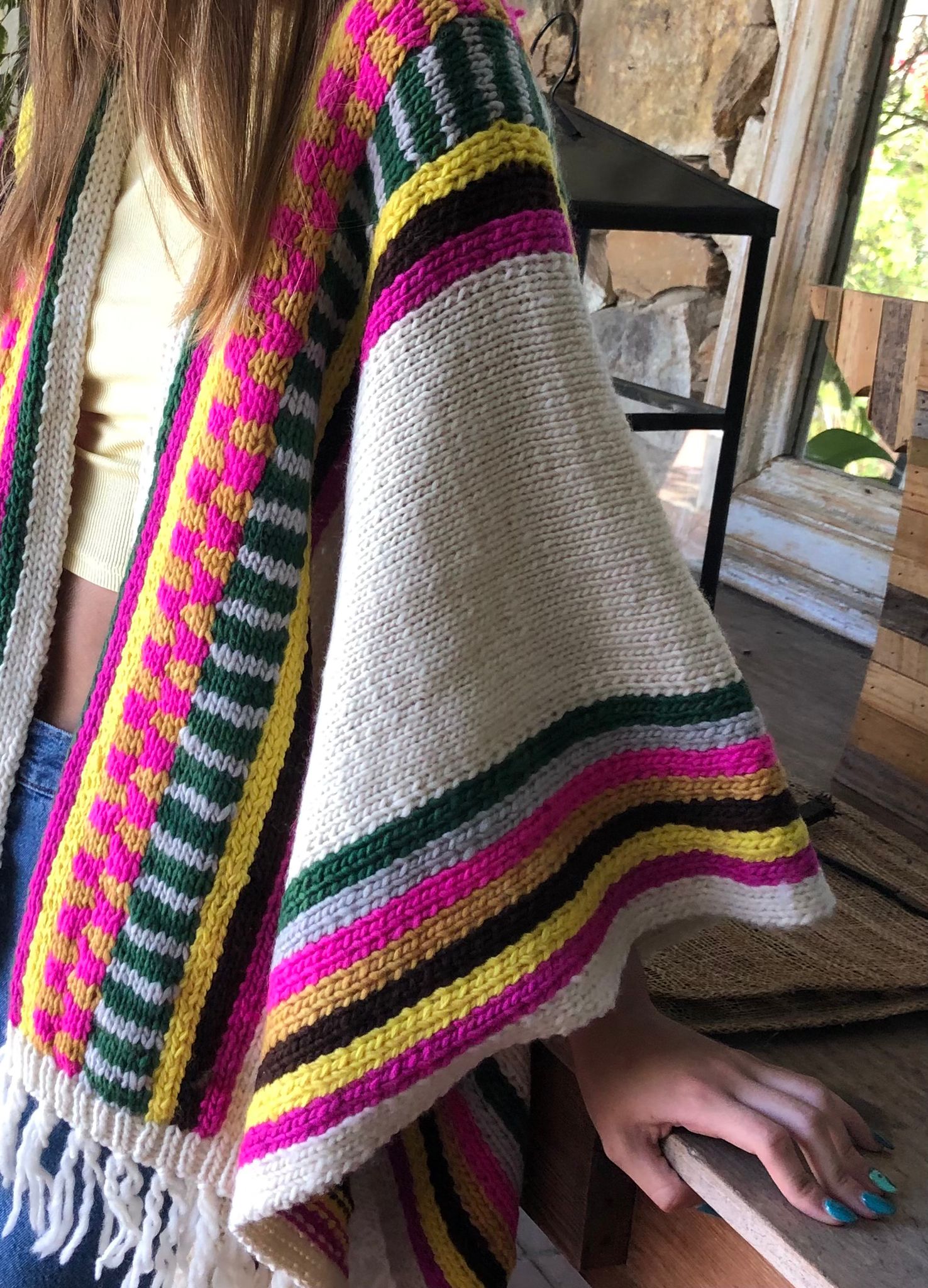 Adaptable, colorido y juvenil chal jacquard tejido a mano.