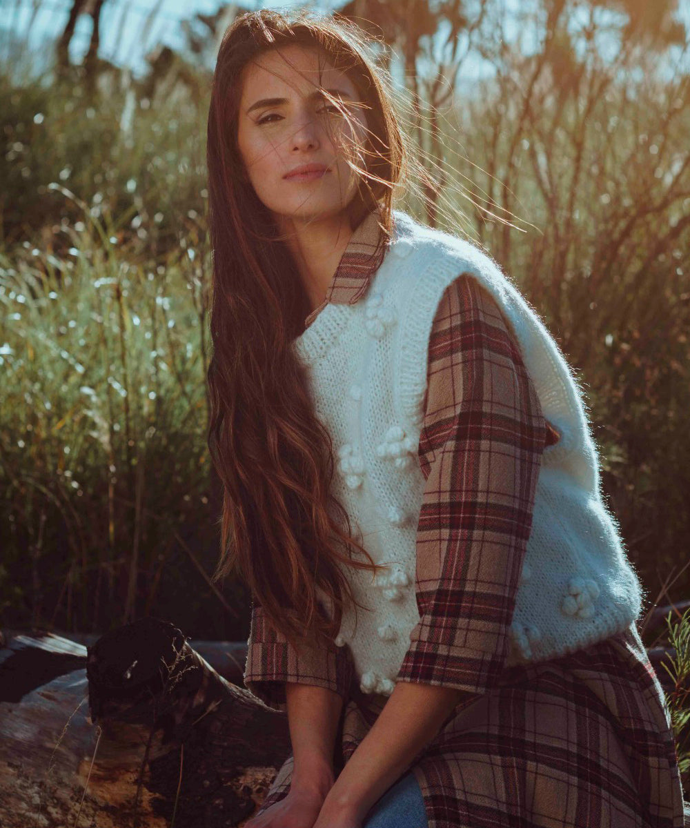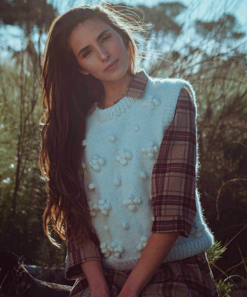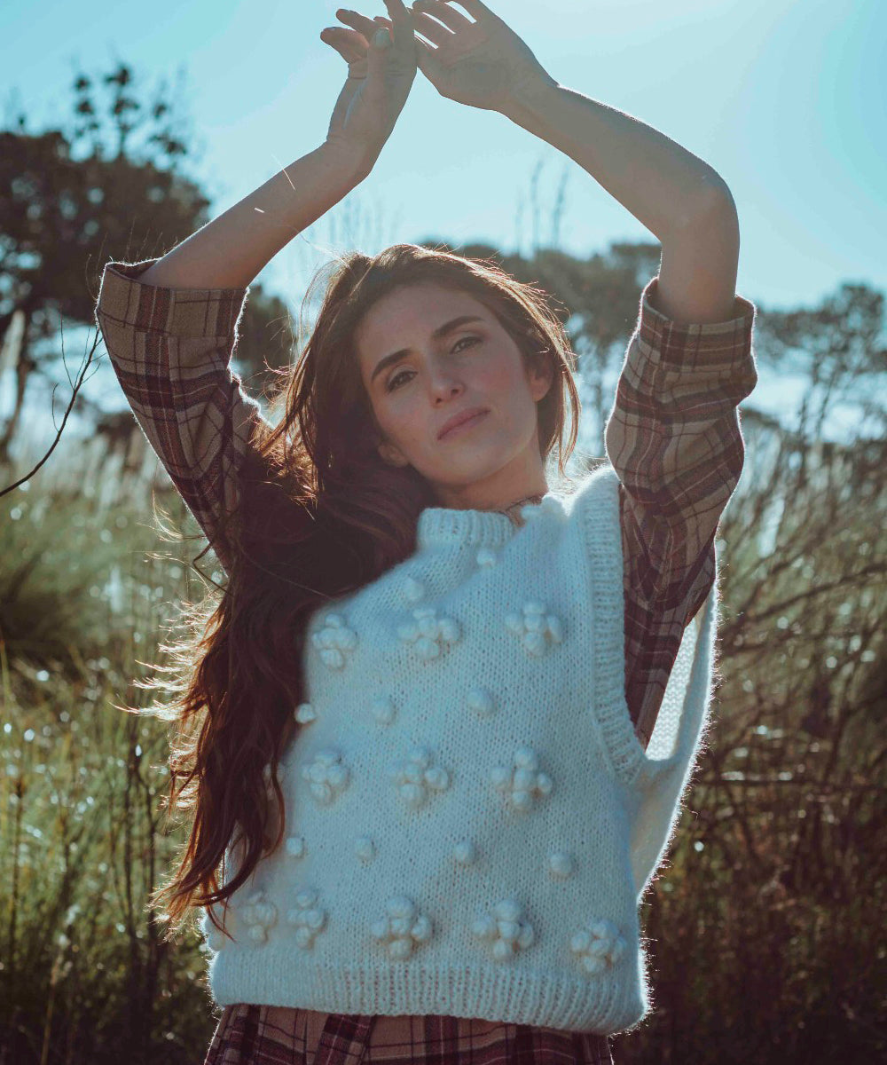 Coqueto y femenino chaleco hecho a mano en lana merino.
