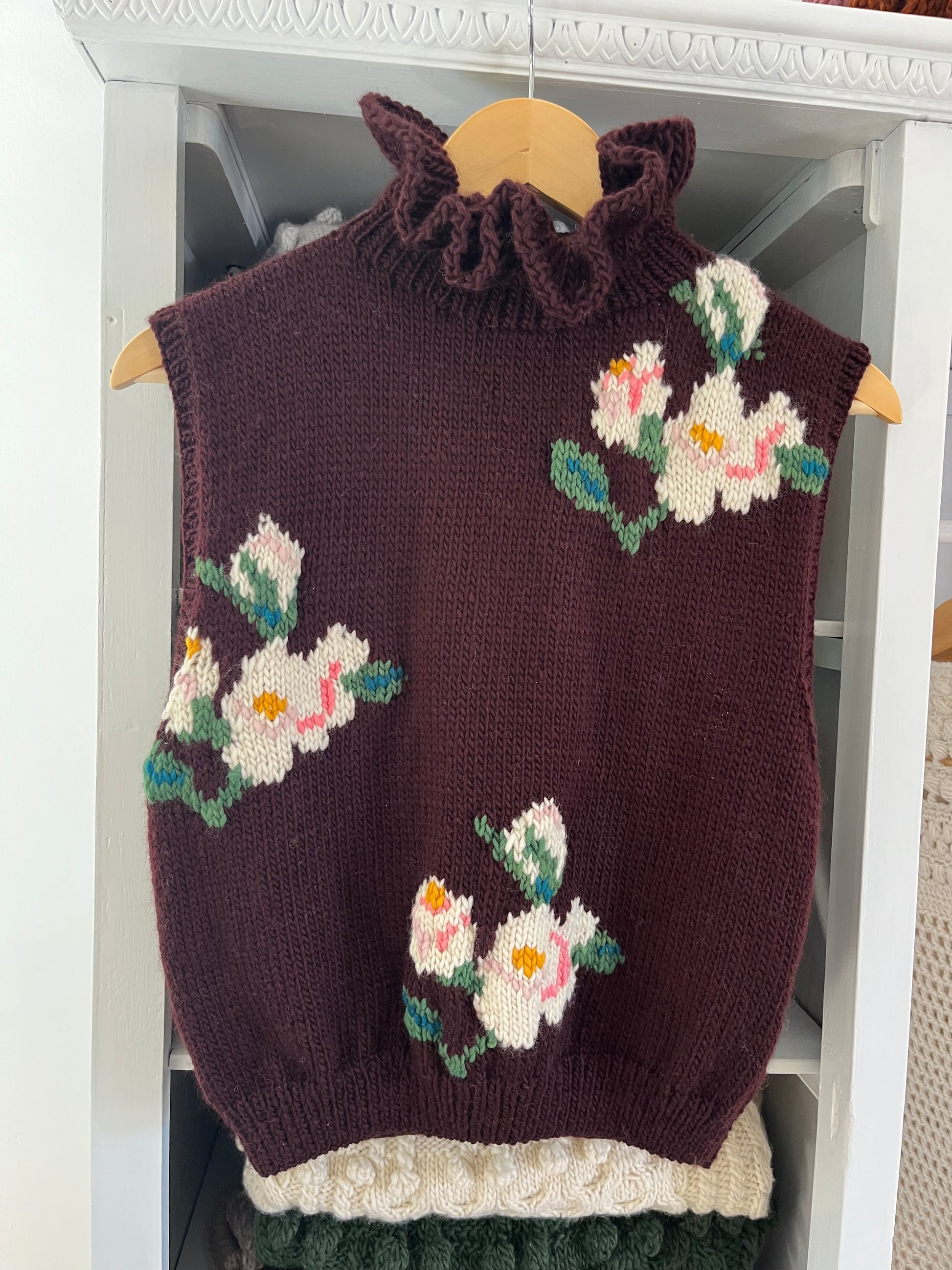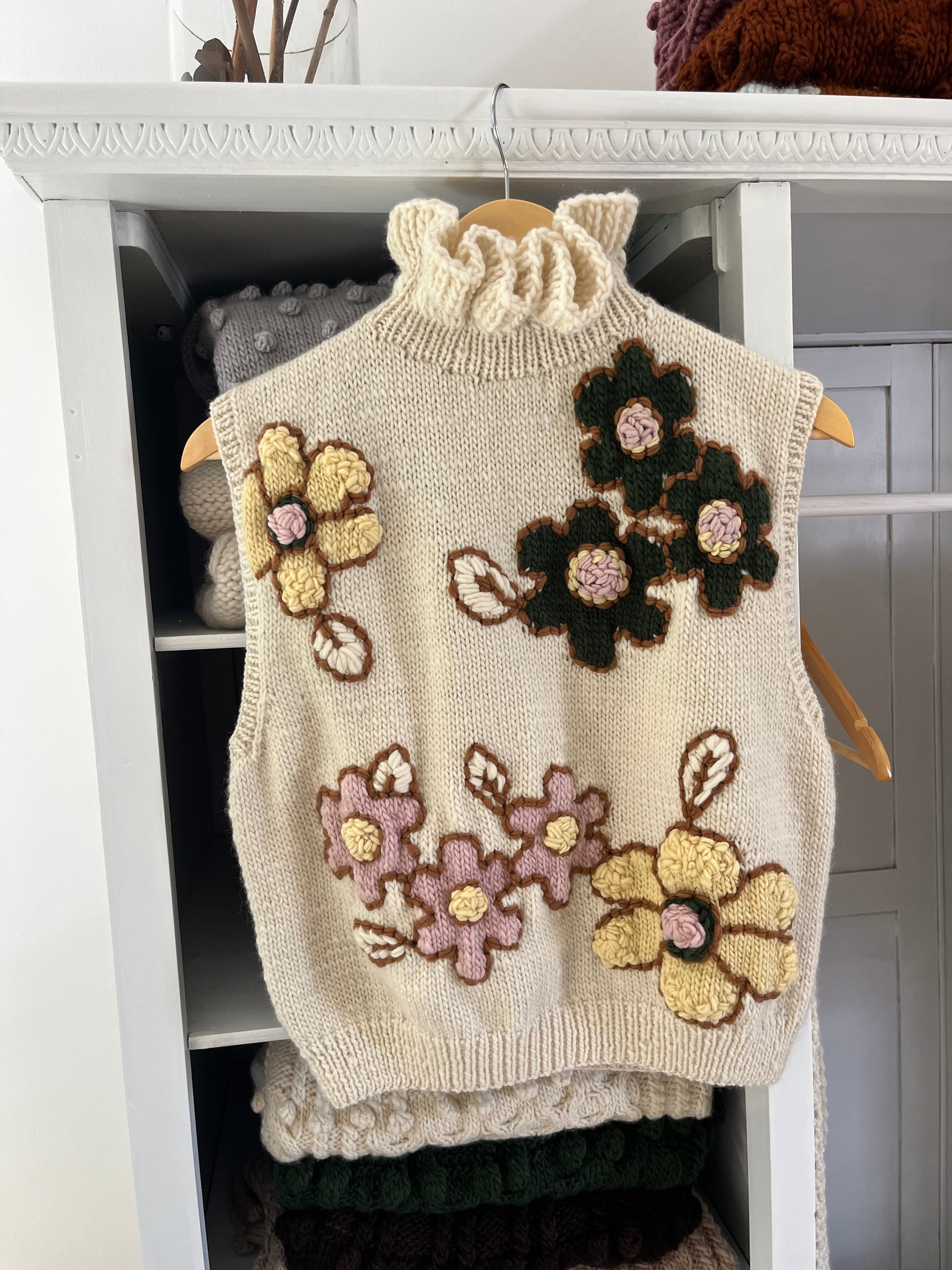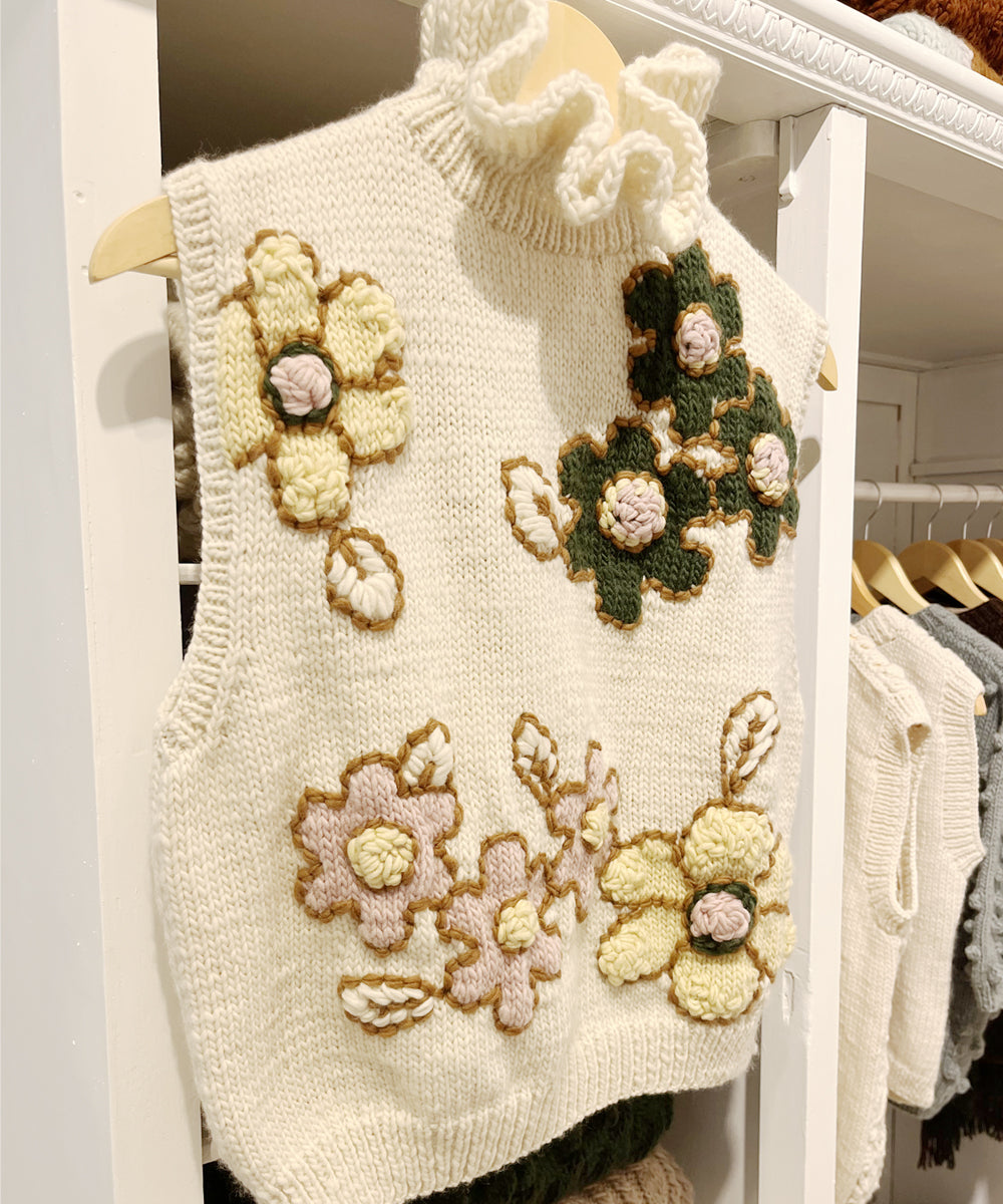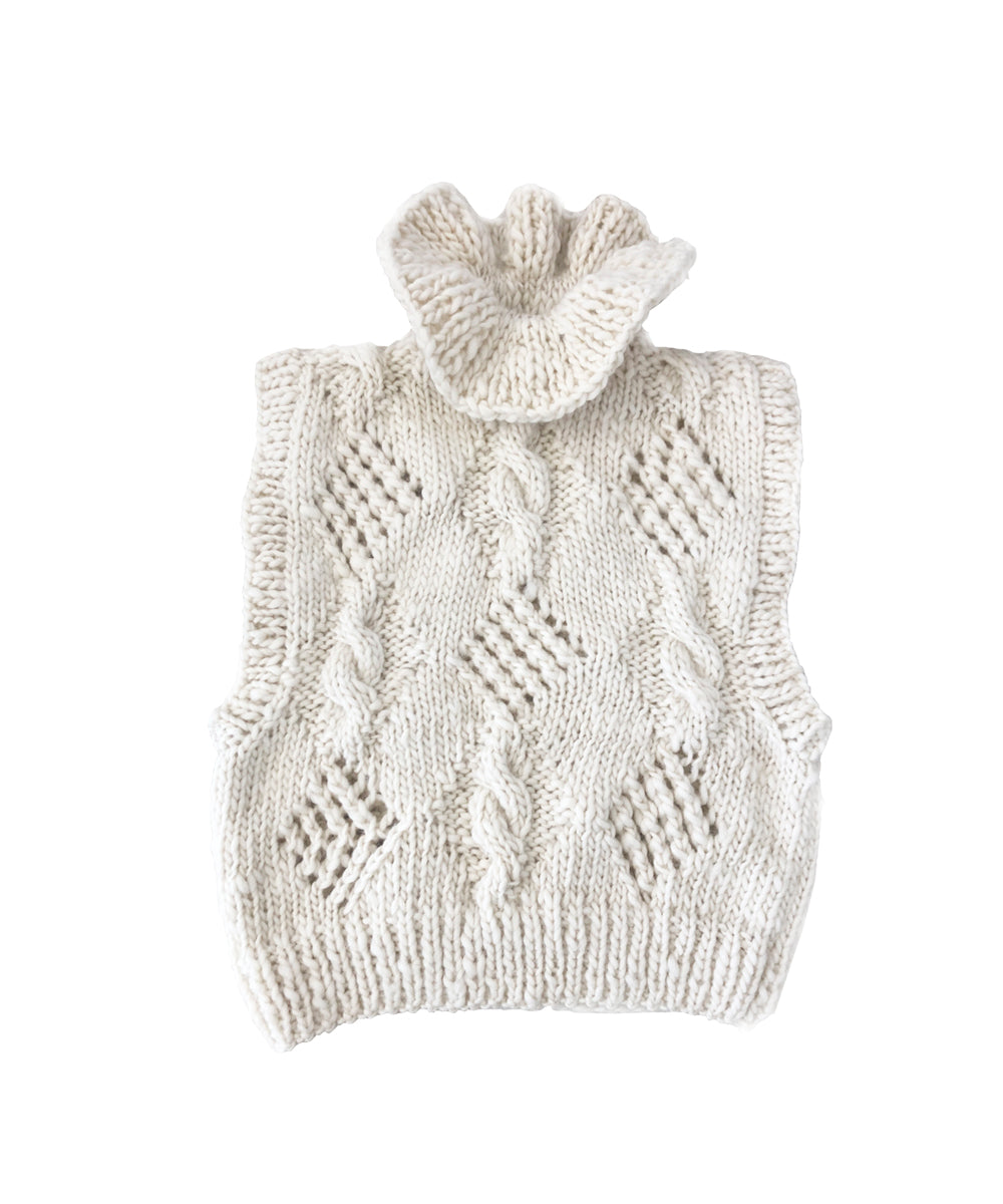 El Chaleco Hana se destaca por su construcción artesanal y todos los detalles en los laterales Con cuello redondo y amplia sisa. La parte trasera está tejida en punto jersey lo que le da flexibilidad-