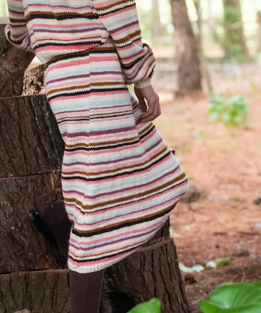La Falda Midi Marina es tejida en jersey a rayas de diferentes tonos. Se ajusta a la cintura con una cómoda banda elástica que garantiza un ajuste personalizado.