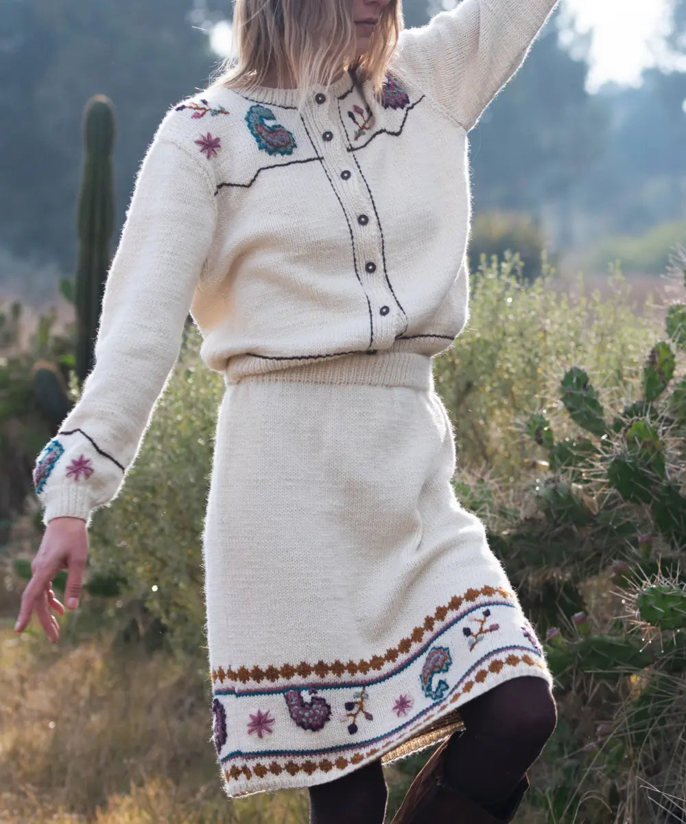 La Falda Midi Paisley se destaca por su diseño y bordado a mano en la parte inferior. Se ajusta a la cintura con una cómoda banda elástica lo que garantiza su ajuste personalizado.
