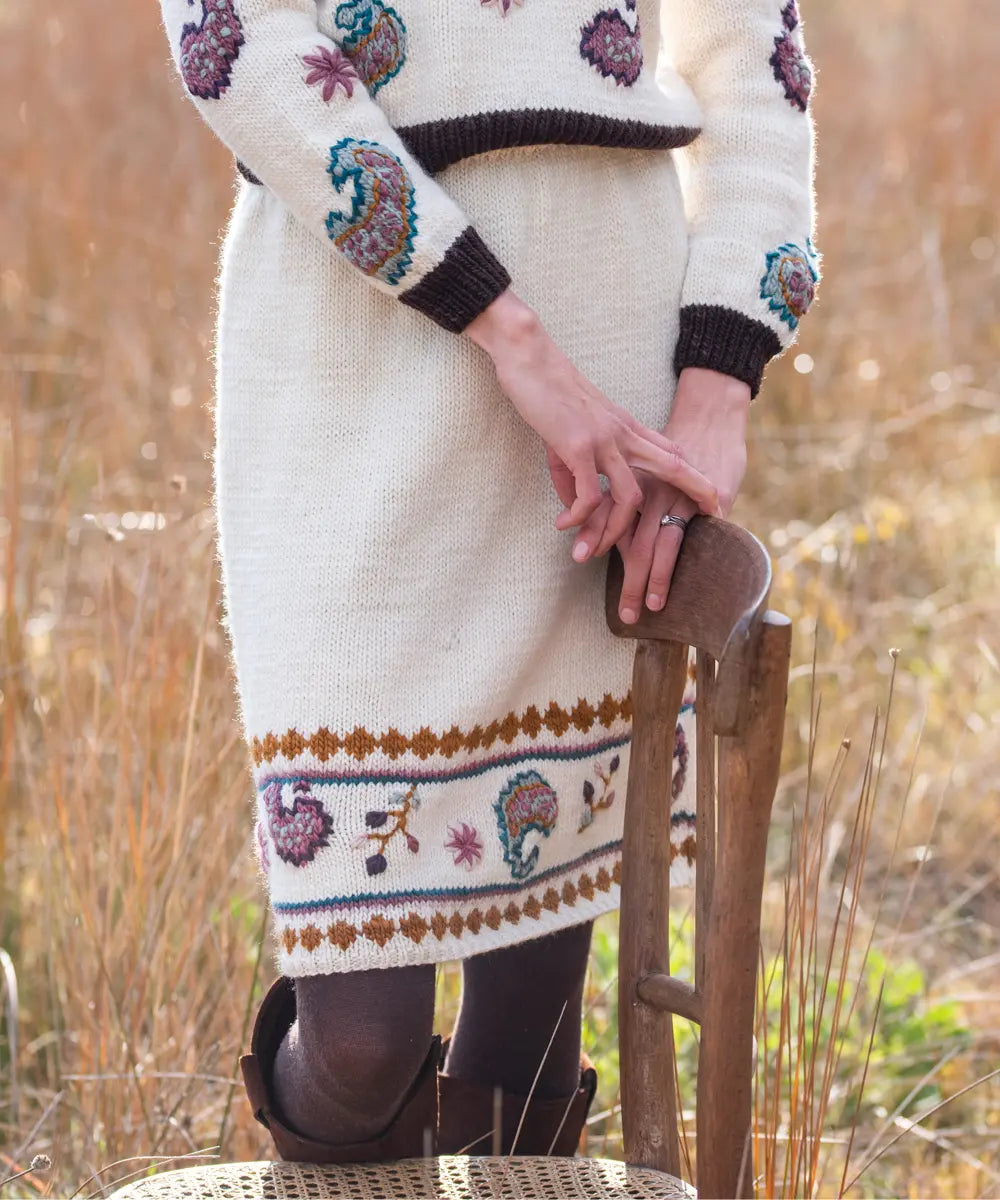Puedes combinar la Falda Midi Paisley con medias cancanes en colores tierra y hace un match perfecto con el Sweater Paisley. Es una prenda que se adapta tanto para el día como para la noche.