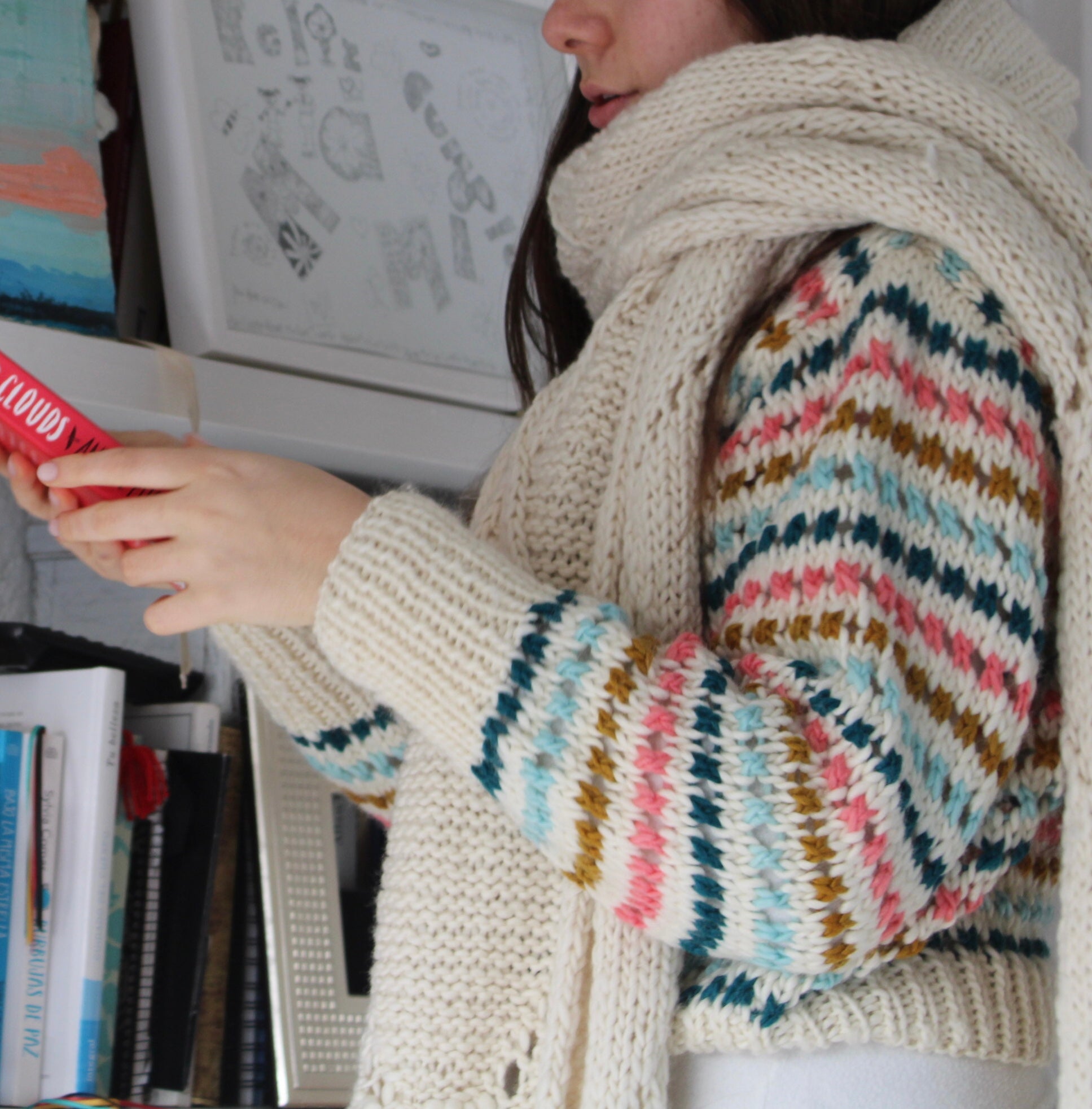 Cálido, delicado y clásico sweater hecho a mano en lana merino .