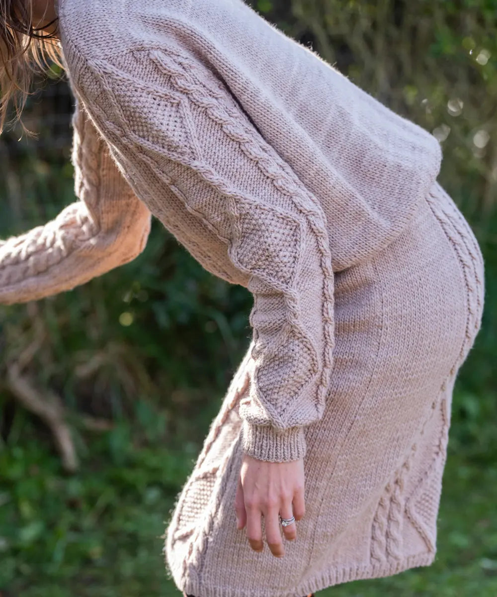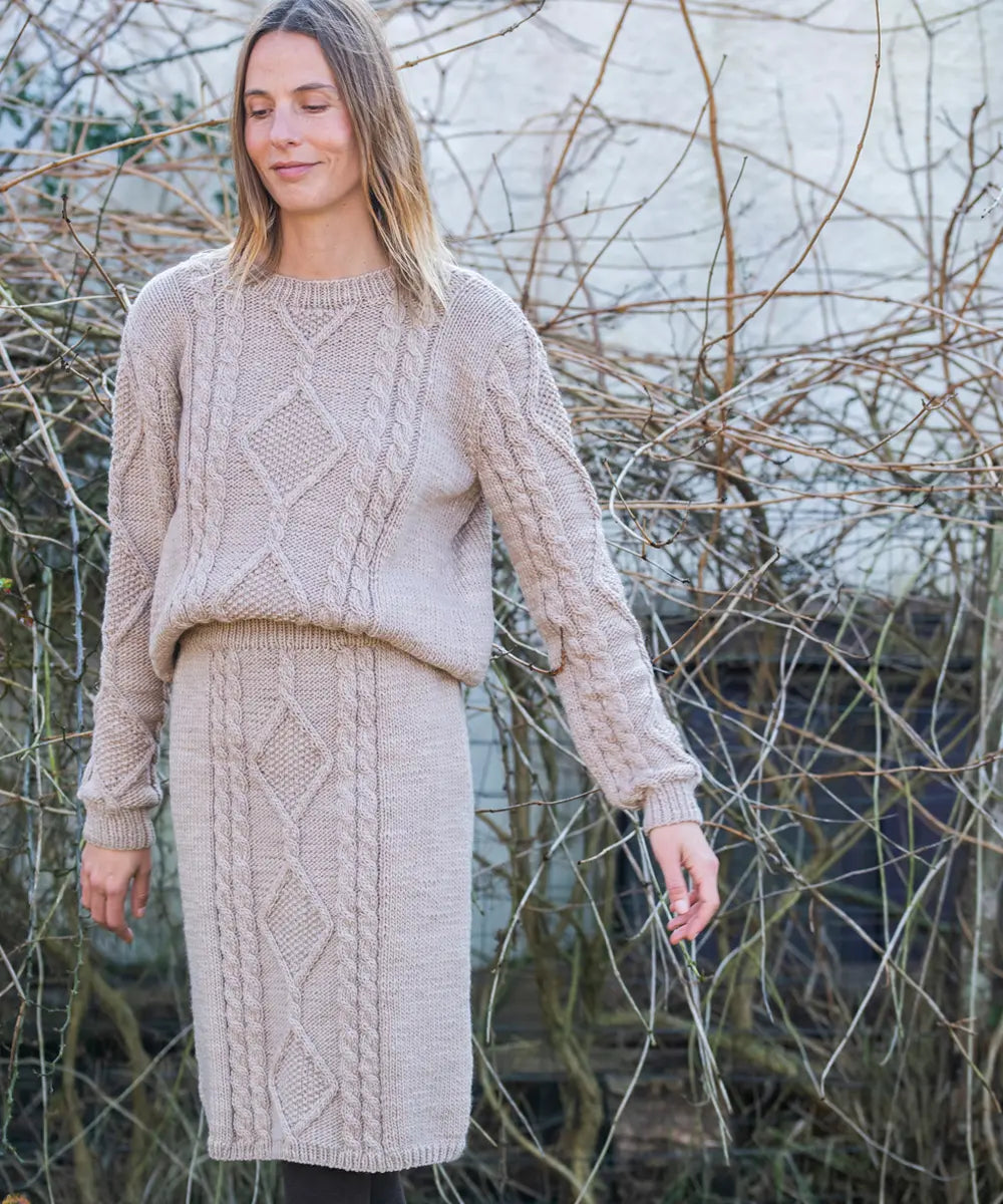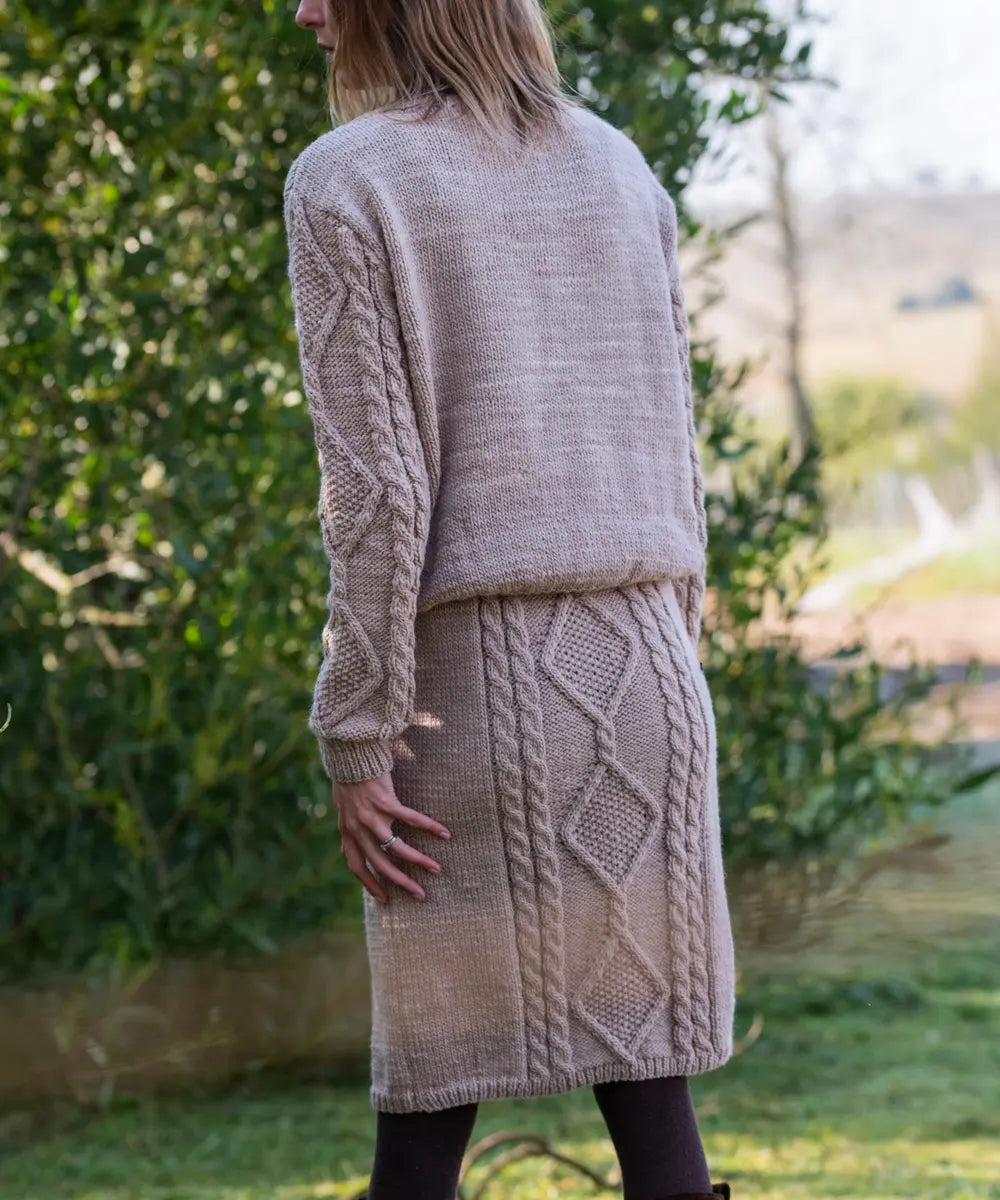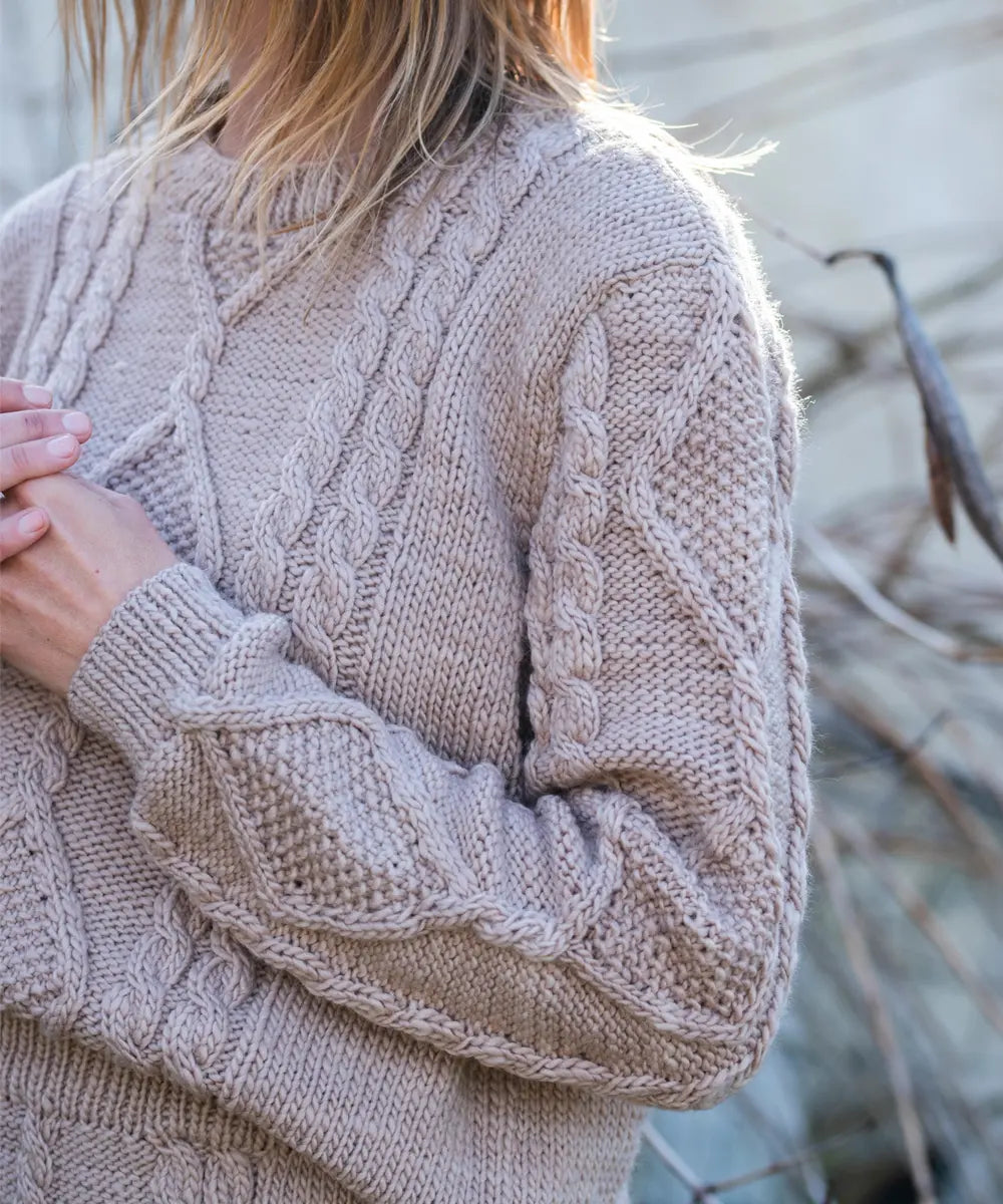 Cálido y versátil sweater texturado tejido a mano en lana merino.
