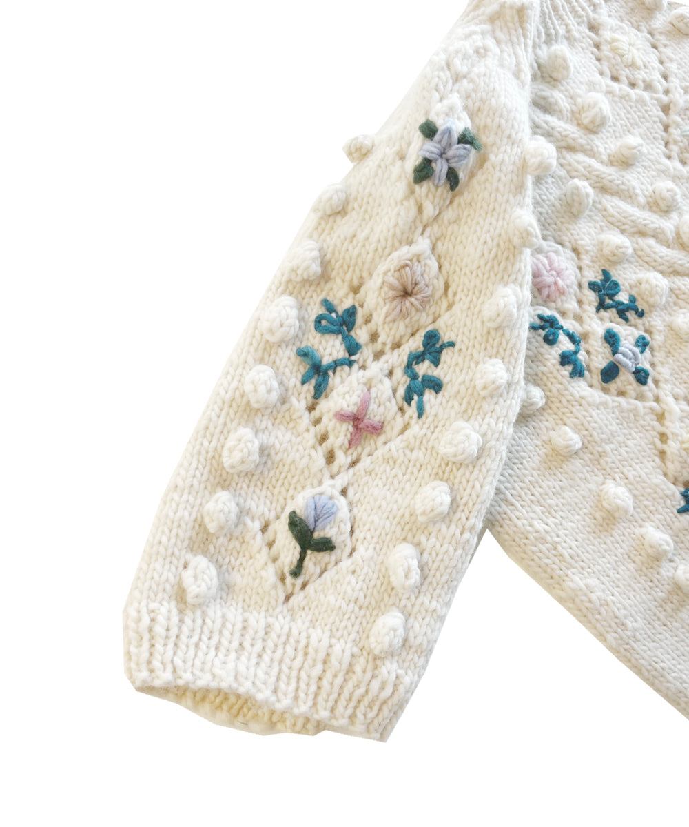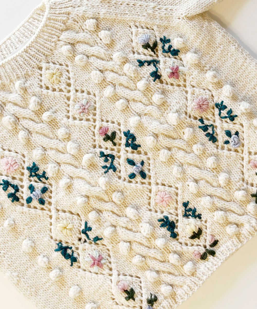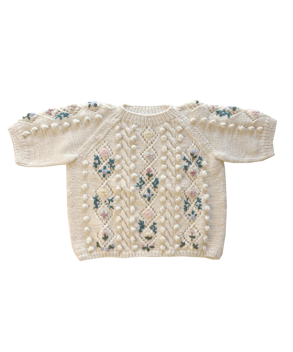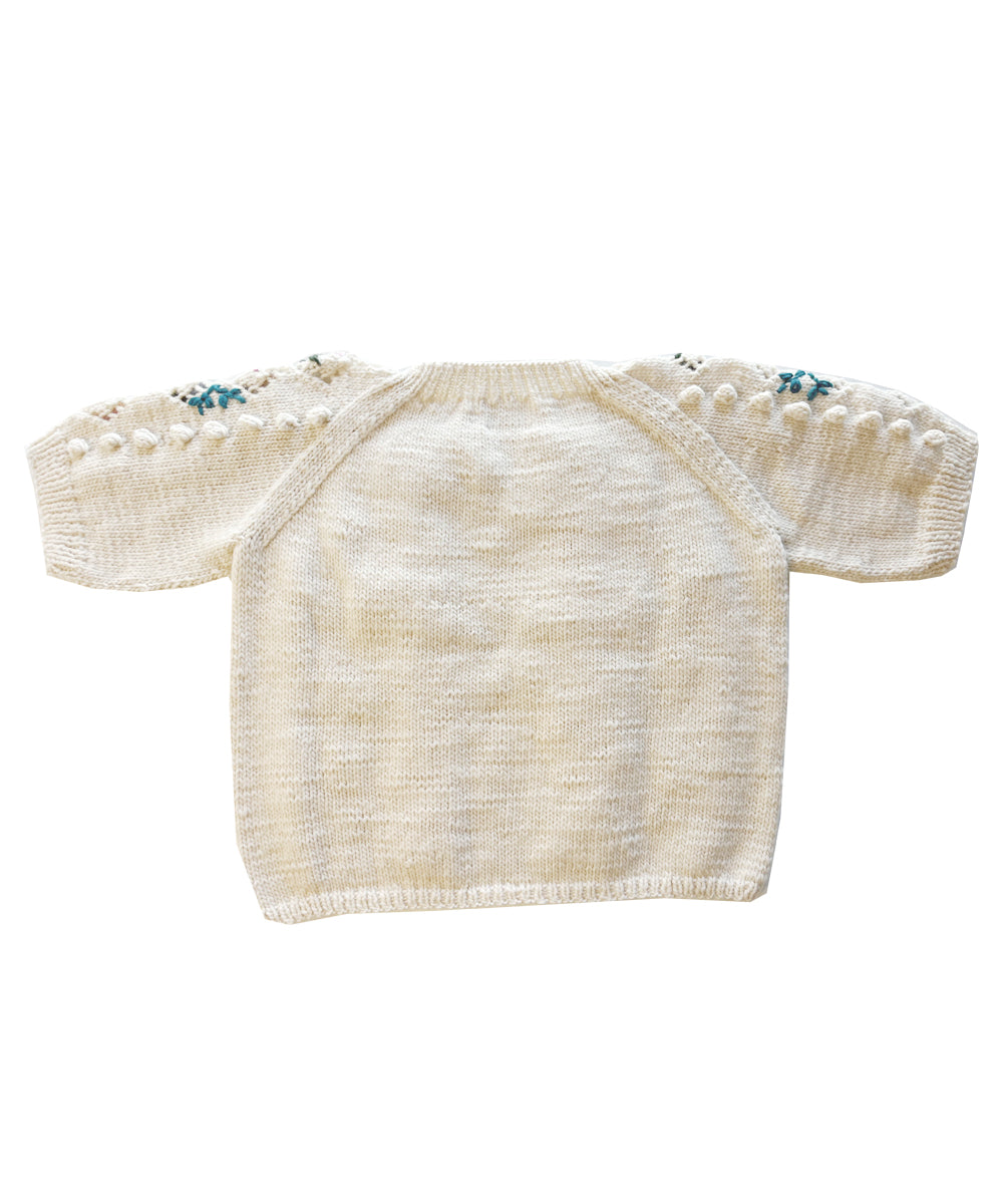 El Sweater Julia presenta variedad de puntos en toda la superficie delantera por lo que proporciona un equilibrado efecto 3D y detalles bordados a mano. Con cuello a la base, manga corta y cómoda silueta.