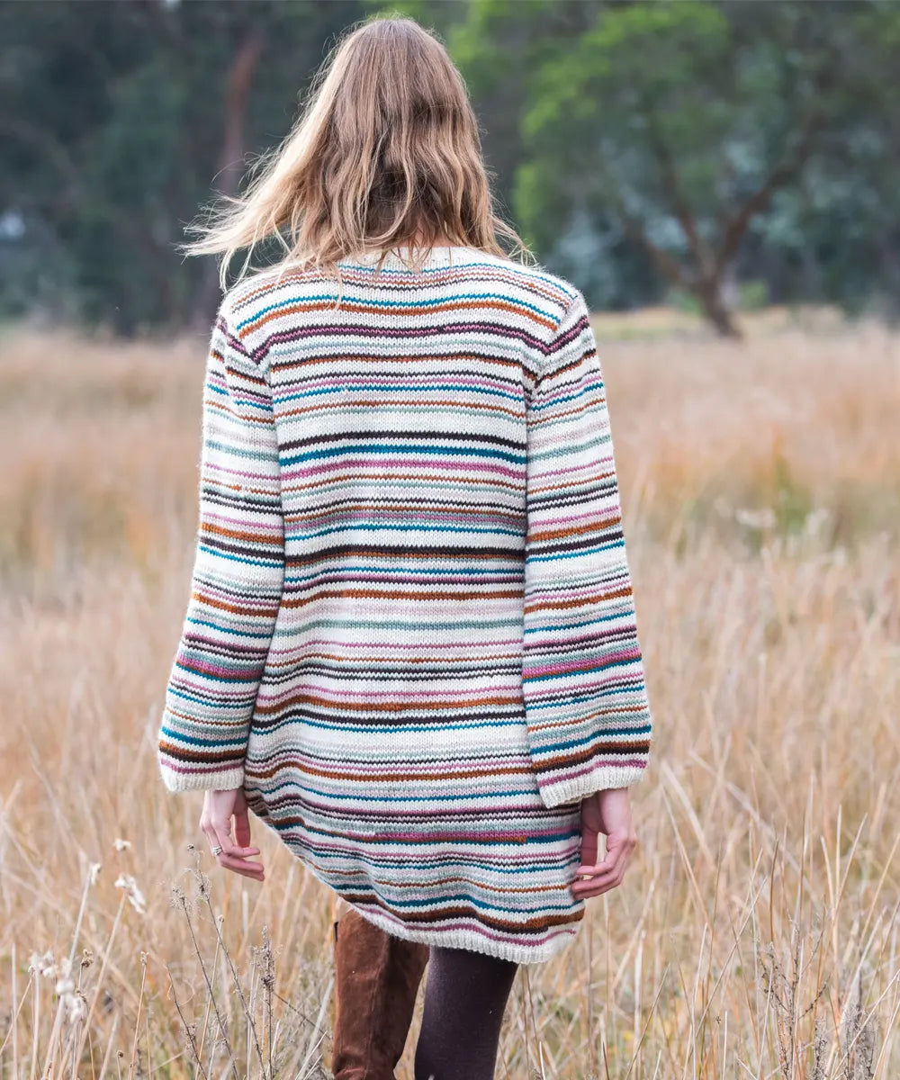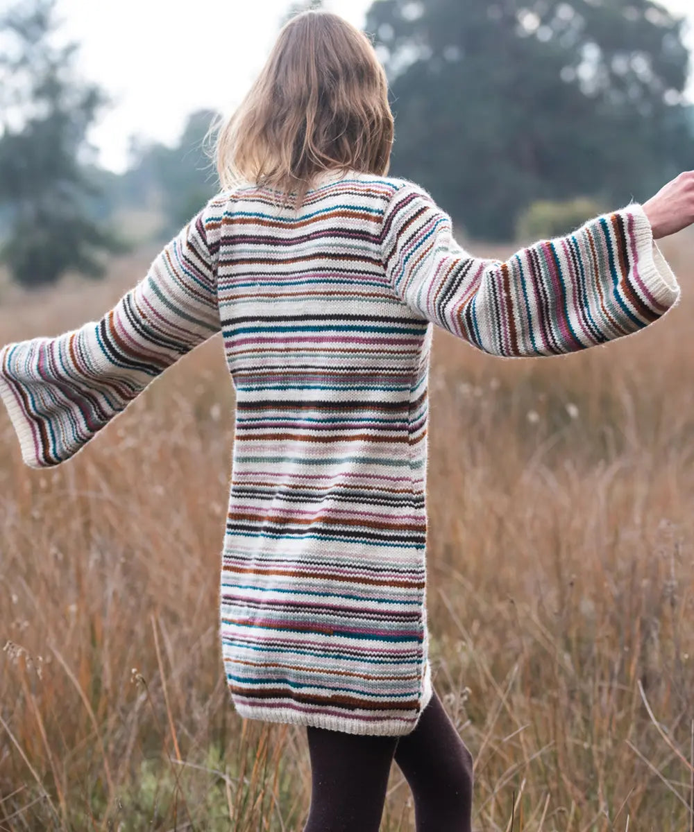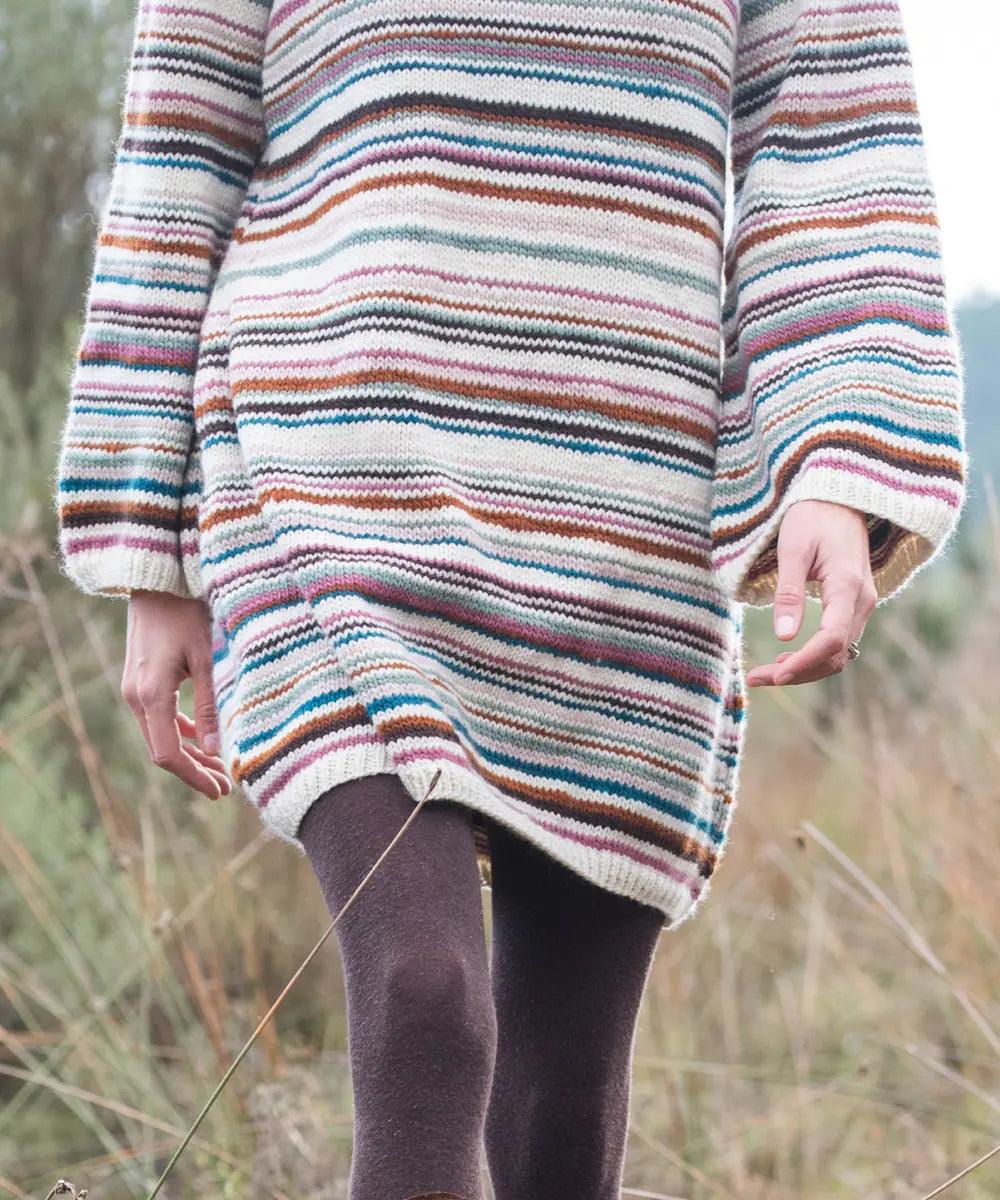 Vestido Midi con manga oxford tejido a mano en lana merino.